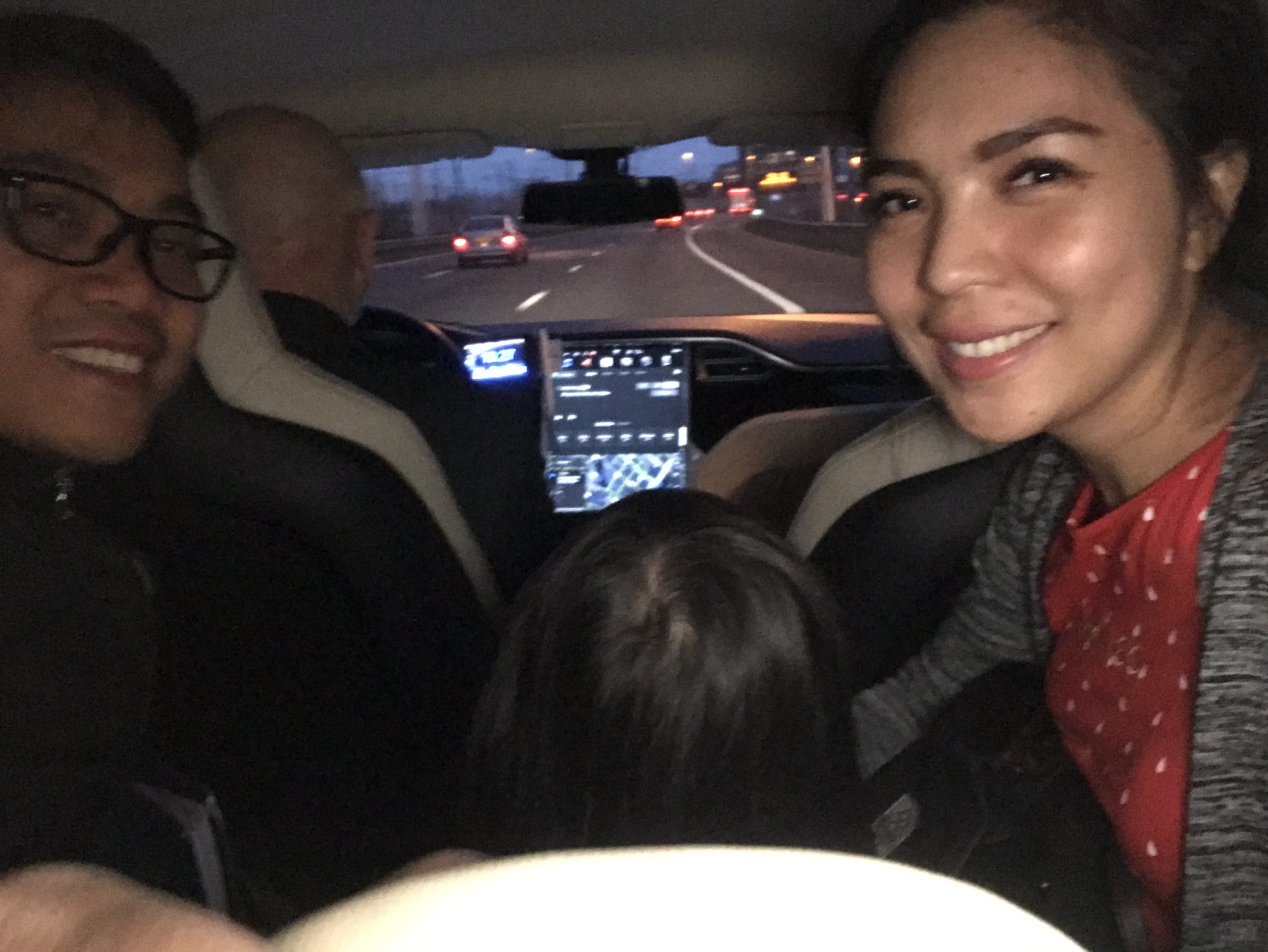 Setelah membeli tiket ini, kami langsung menuju keluar bandara sambil mencari tempat menunggu taksi. Saat keluar bandara hawa dingin musim semi pun langsung terasa, sekitar 9 derajat celcius. Karena tidak tahan dengan dinginnya kami pun hanya foto-foto sedikit dan langsung naik ke taksi yang memang sudah ada antriannya di depan pintu keluar bandara. Taksi di Amsterdam menurut saya keren-keren, karena mobil yang digunakan untuk taksi seperti BMW, Mercy, dan Tesla. Kami pun memilih untuk naik taksi Tesla Model S, sambil selfie-selfie dalam mobilnya hehehe…kapan lagi naik Tesla Model S.